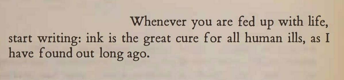 كلما سئمت من الحياة، ابدأ بالكتابة: الحبر هو العلاج العظيم لجميع الأمراض البشرية، كما اكتشفت منذ فترة طويلة.
