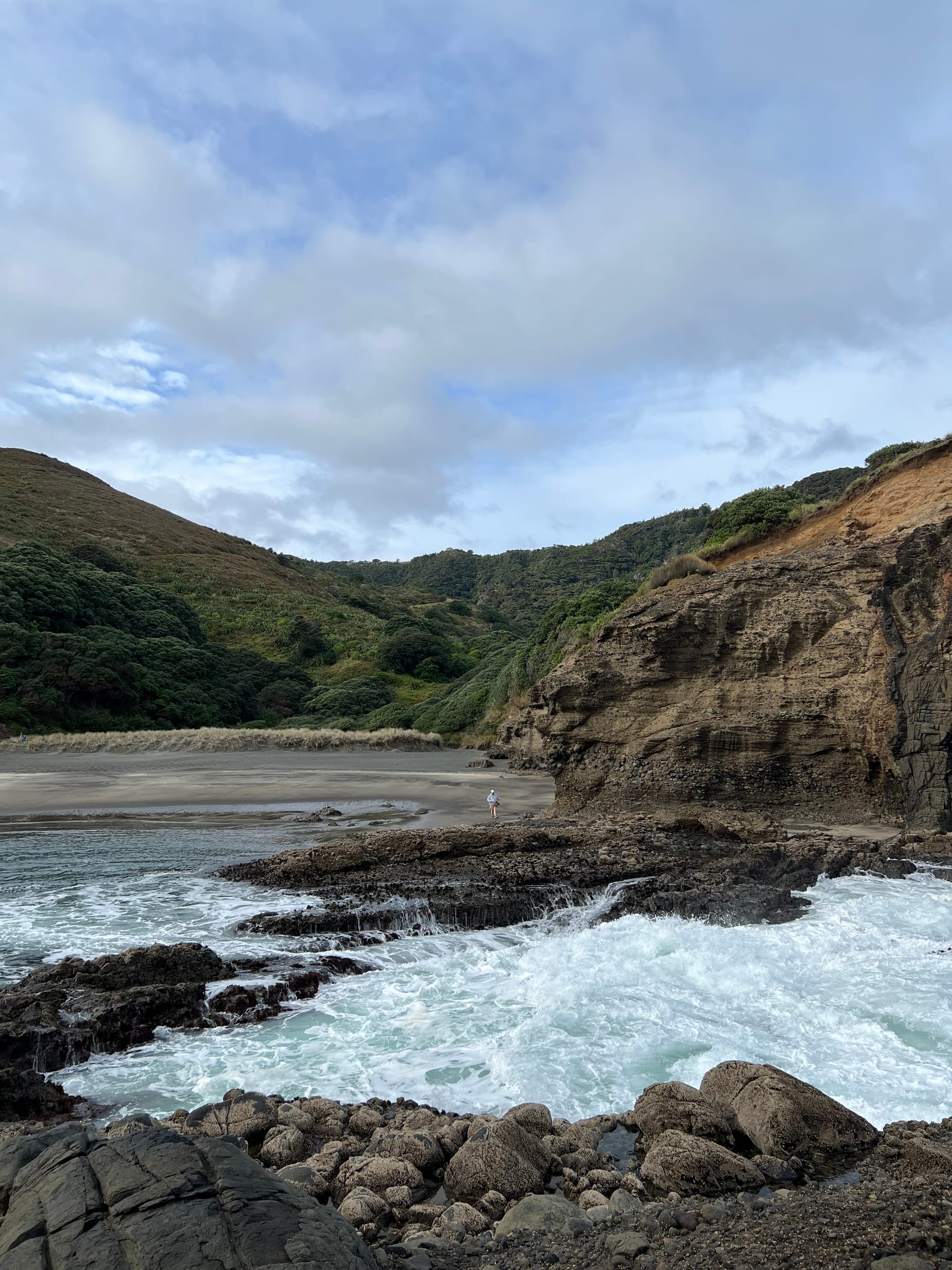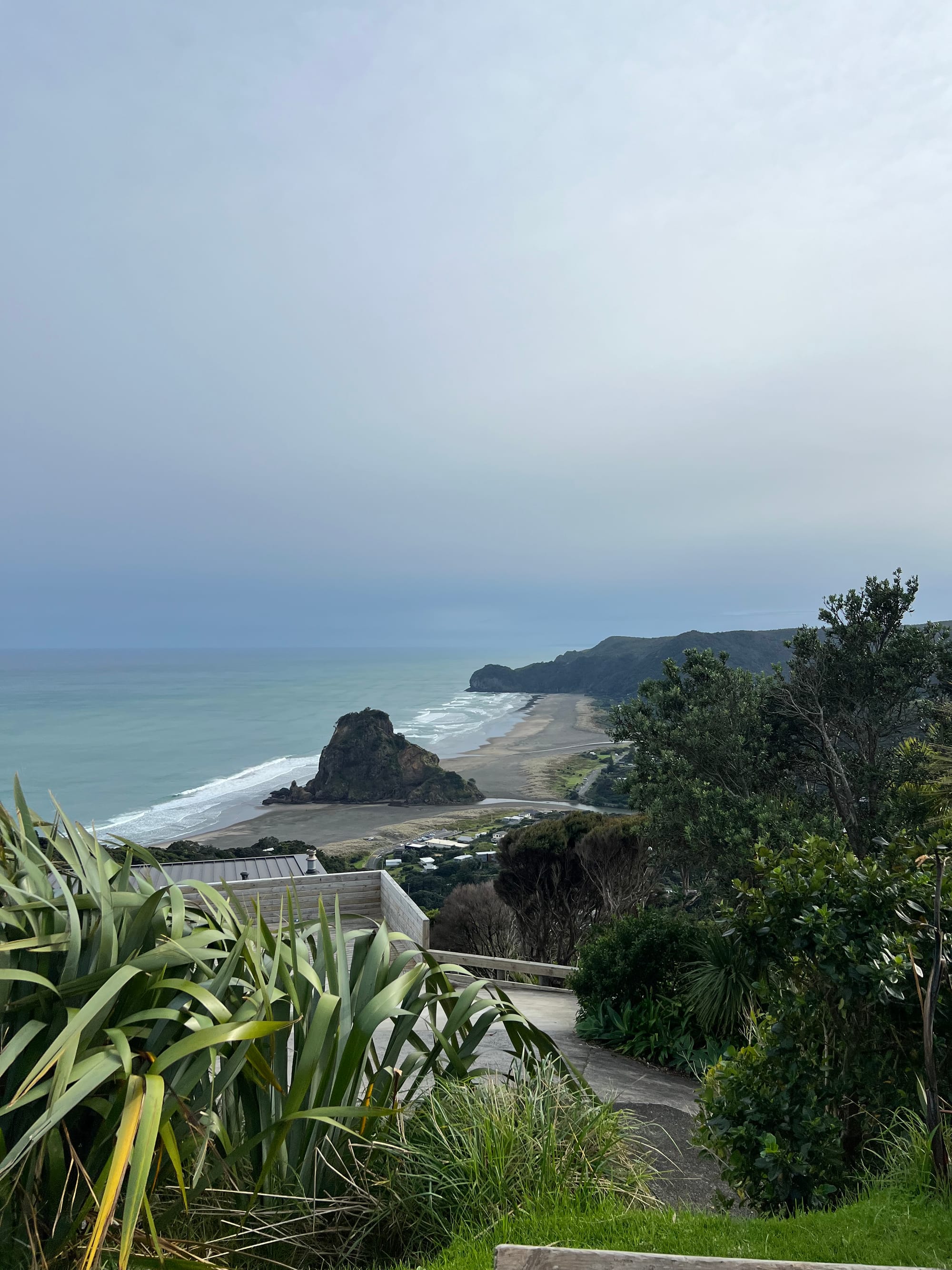في اليوم الثاني زرنا الشاطئ الغربي من أوكلاند، منطقة Piha، تبعد نحو 45 دقيقة بالسيارة. الطريق ساحر، والطبيعة الجبلية والكثافة النباتية وتنوعها شيء مذهل.