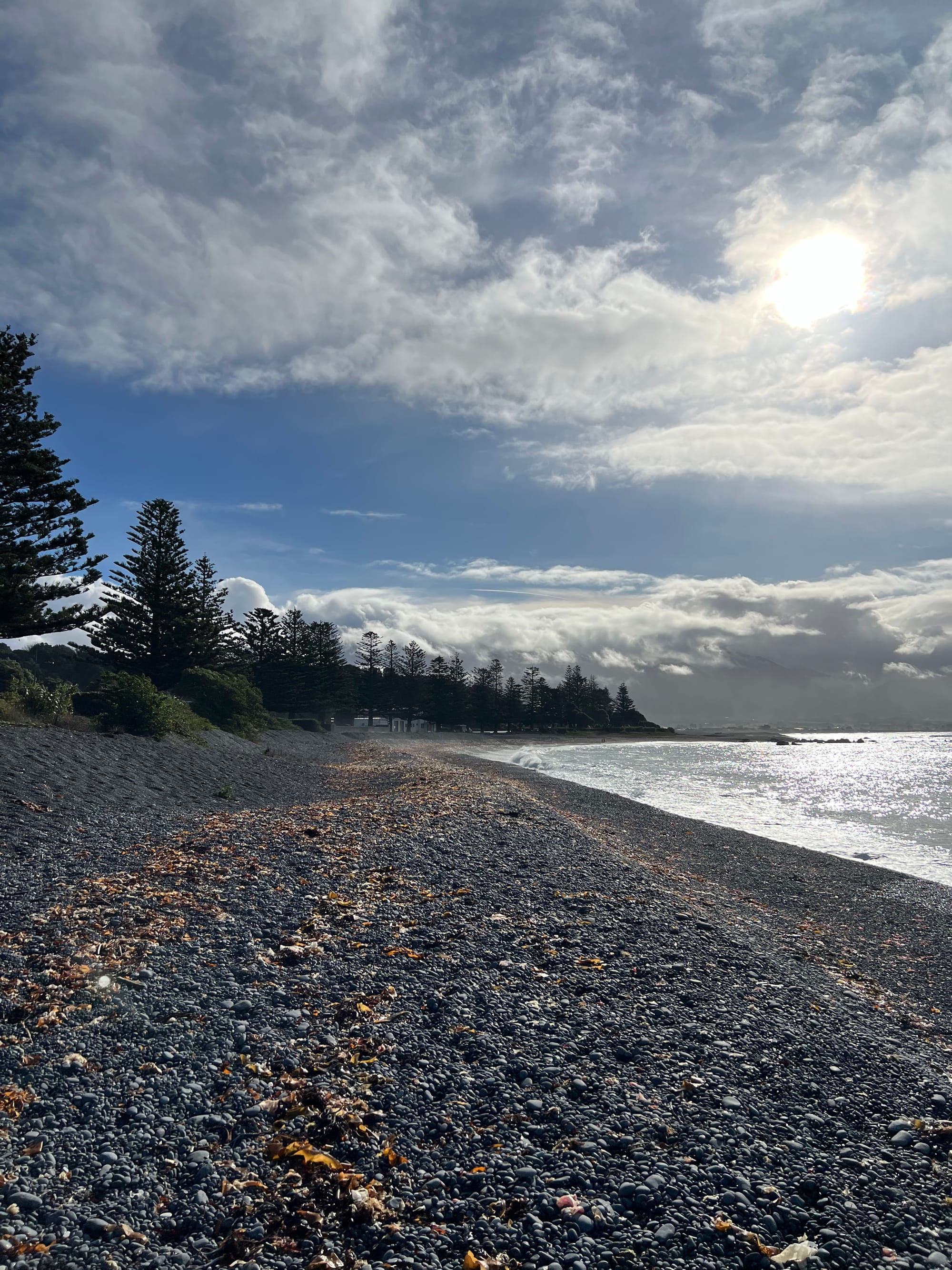 معظم أمس قضيناه في الطريق من Picton إلى Christchurch. يمر جزء كبير من هذا الطريق الساحر بجانب المحيط، إلى يسارنا جبال وغابات كثيفة، وعلى اليمين منظر البحر والصخور المتنوعة على الشواطئ.